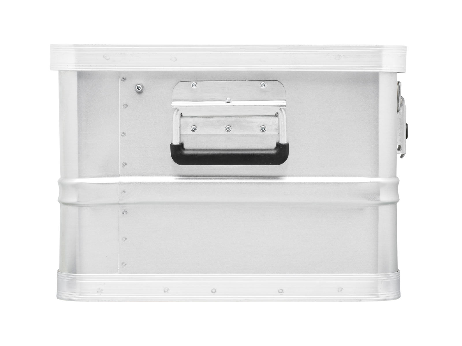 Entry-level aluminum box with 46-liter capacity, lightweight yet robust design, stackable features, and secure toggle locks for versatile use.
